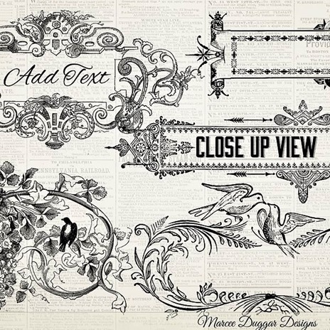 Beautiful Set of 25 Vintage Banner stamps taken from vintage books.Contains .png and .abr Photoshop brush formats.